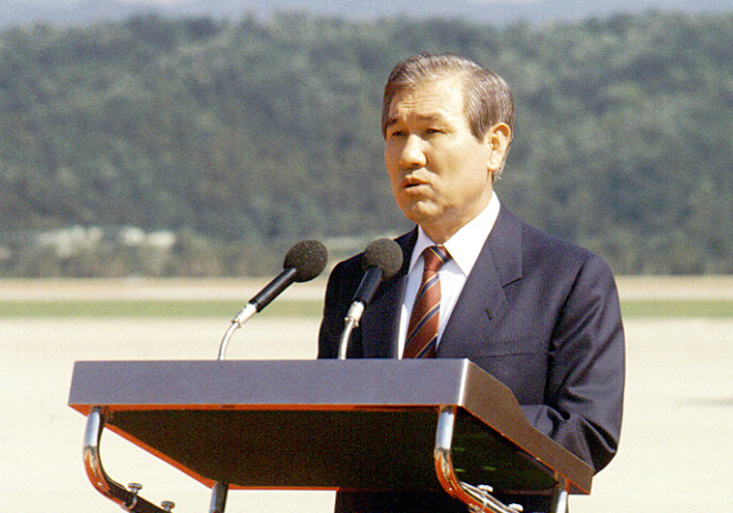 26일 서거한 노태우 전 대통령은 대한민국 건국 이래 처음으로 선거로 선출돼 선거로 물러난 대통령이다. 이 선거는 군부의 권위주의 정권이 민중항쟁에 굴복해. 노태우민정당 대통령 후보.